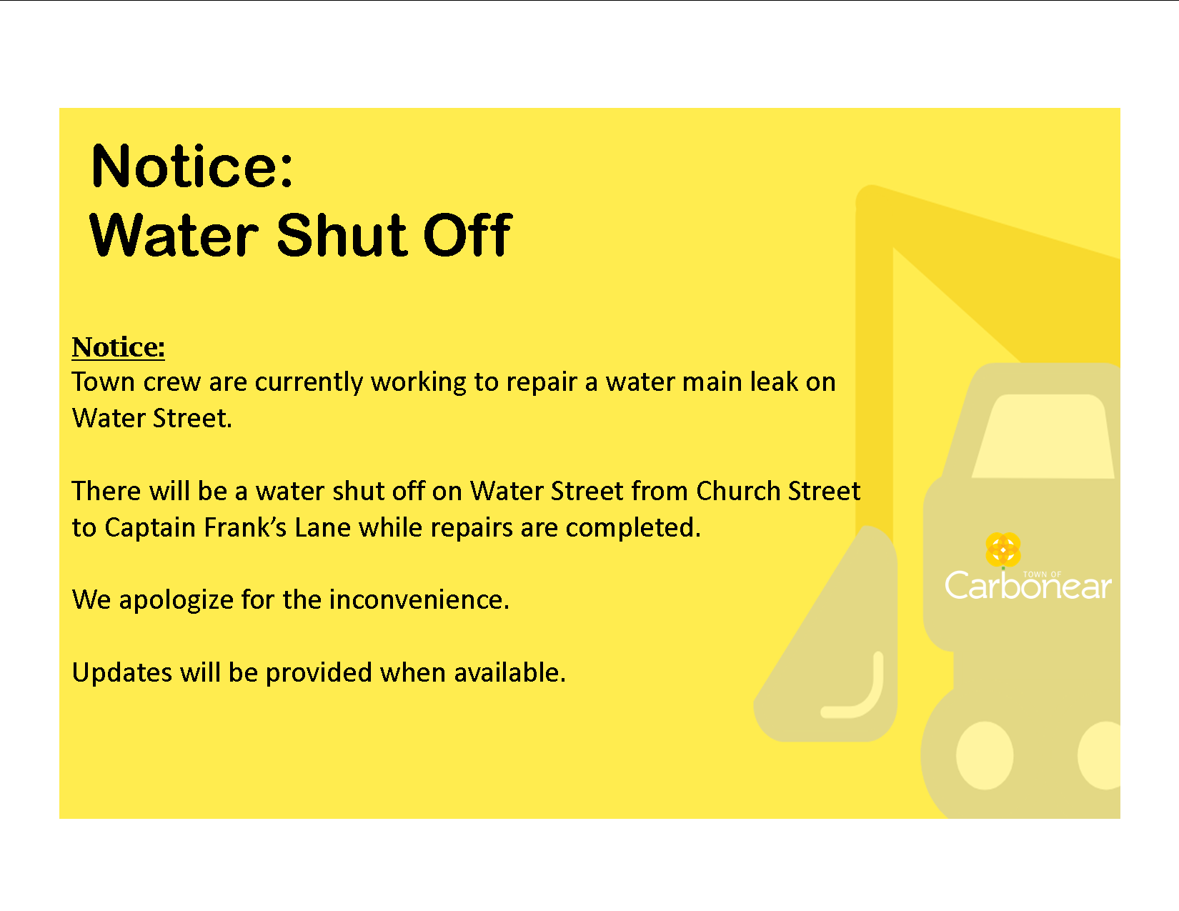NOTICE: WATER SHUT OFF on Water Street from Church Street to Captain Frank’s Lane