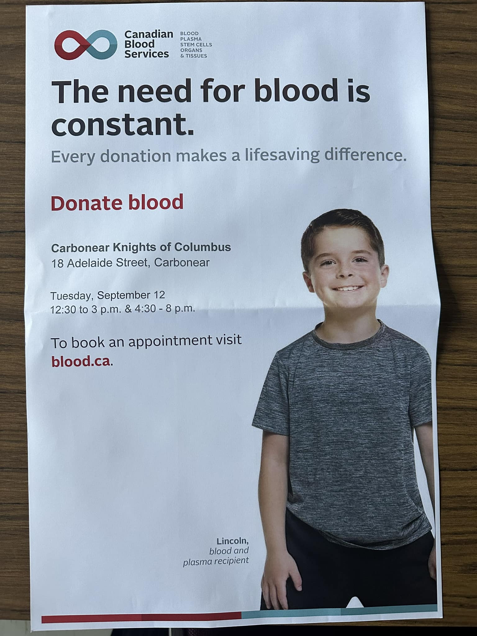 Canadian Blood Services Blood Donor Clinic on Tuesday, September 12, 2023