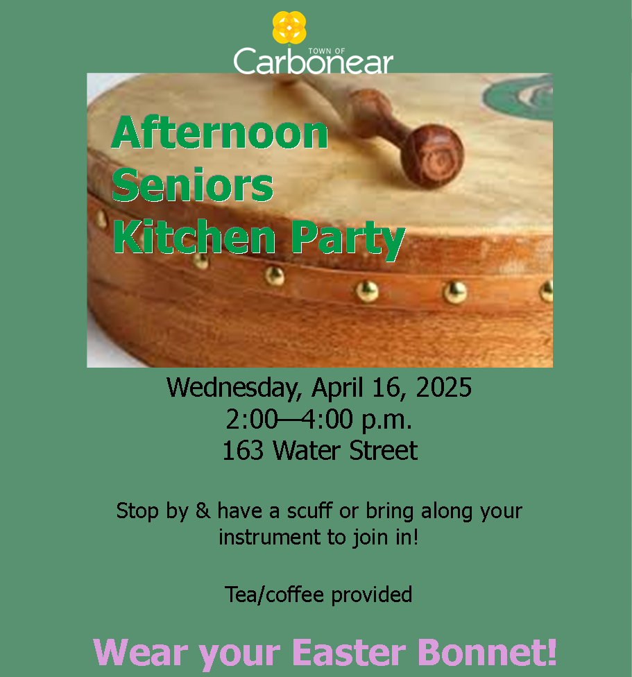 Afternoon Seniors Kitchen Party April 14, 2025 Our Afternoon Seniors Kitchen Party is coming up this Wednesday! 2 to 4 p.m. at 163 Water Street. Stop by and have a scuff or bring along your instrument to join in!