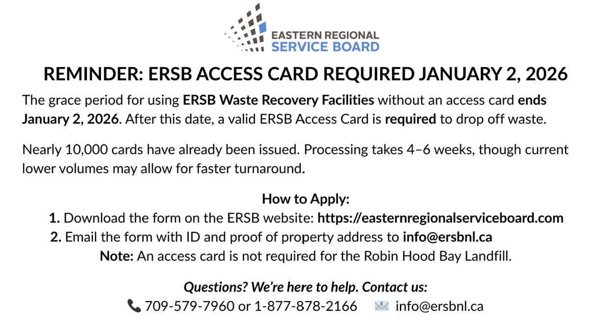 REMINDER from Easter Regional Service Board: Access Card is required after January 2, 2026 December 17, 2025