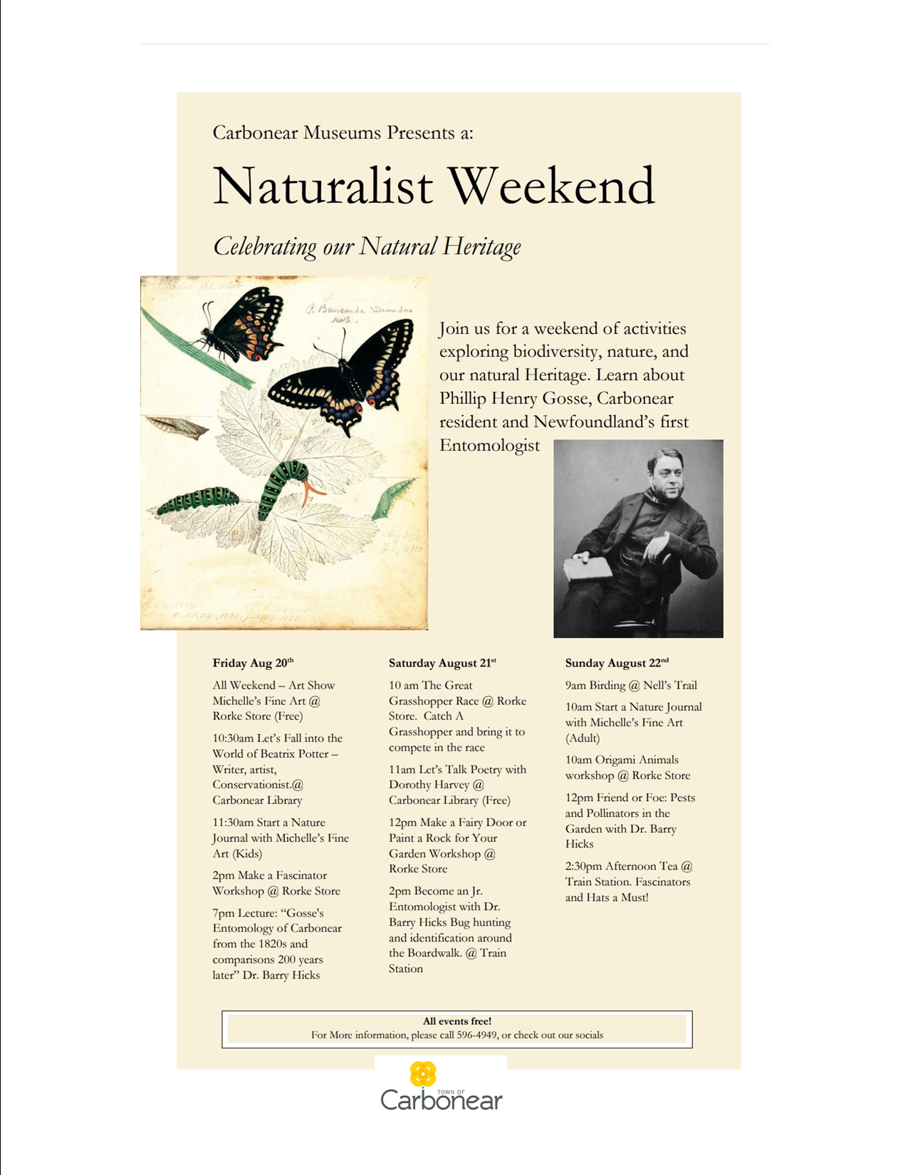 These performances will take place around the Town of Carbonear and feature solo and group musical/performing acts.