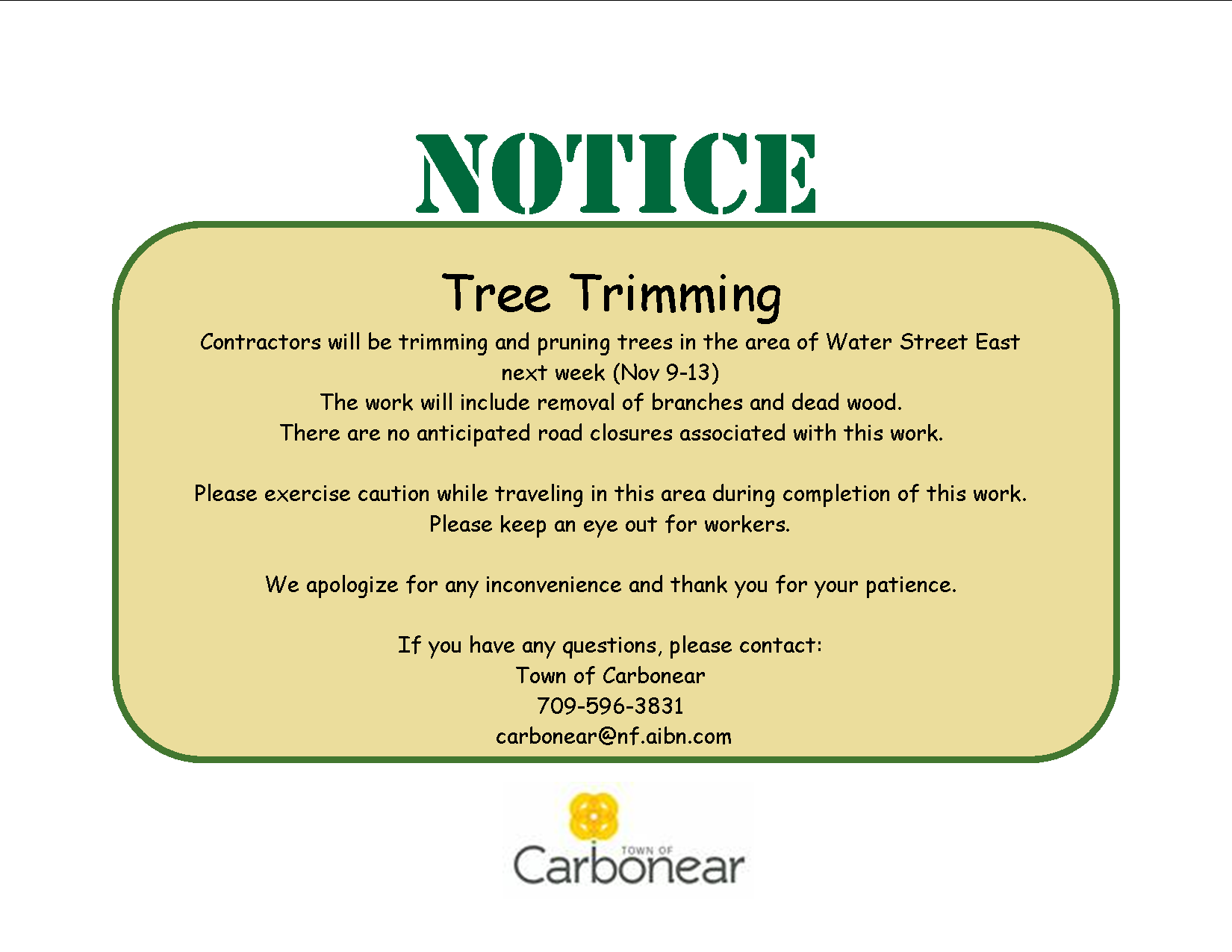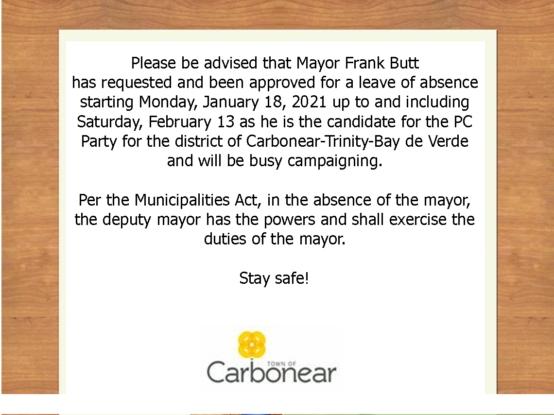 The Town of Carbonear thank you for your patience and continued cooperation as we work together to prevent the spread of the COVID-19 virus.