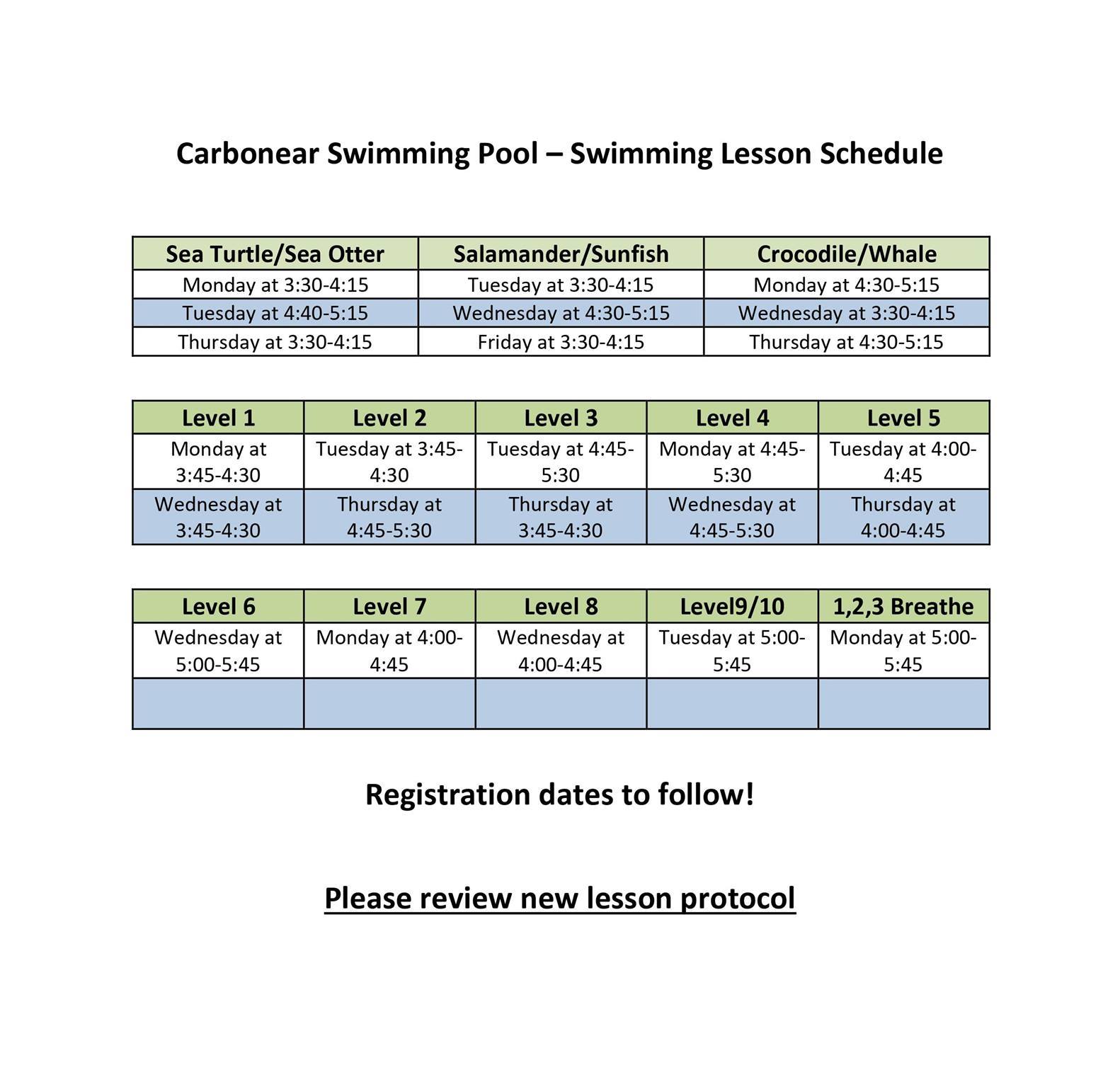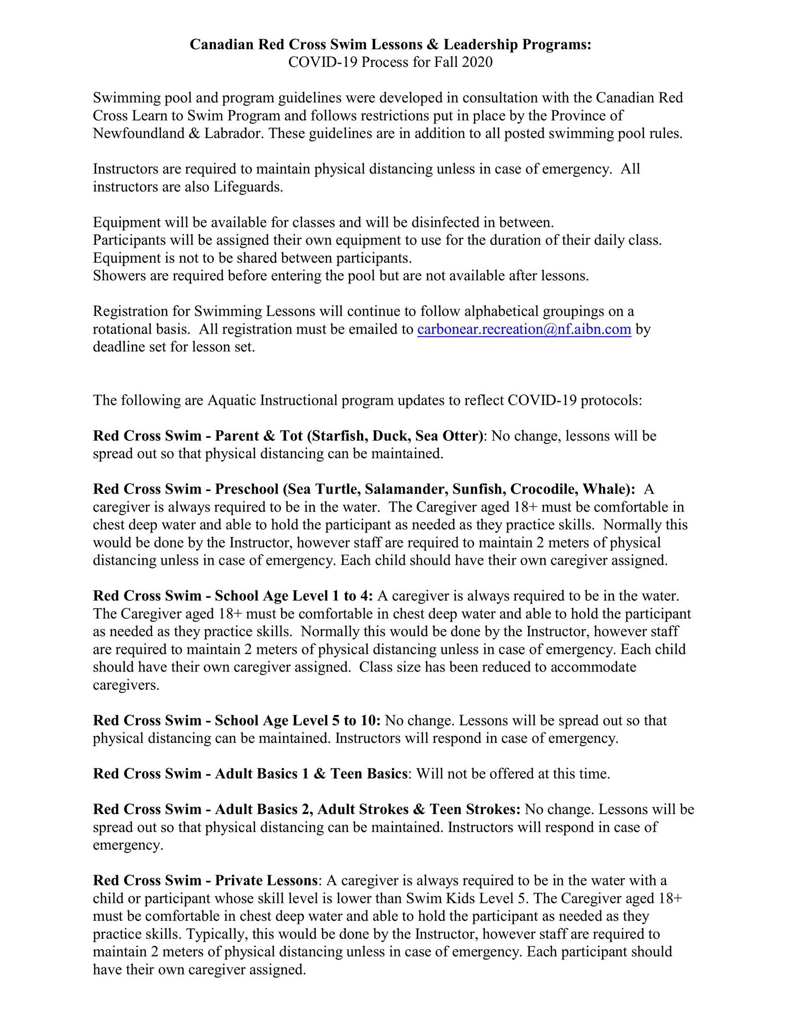 Information regarding the Carbonear Swimming Pool lessons registration and COVID-19 protocols