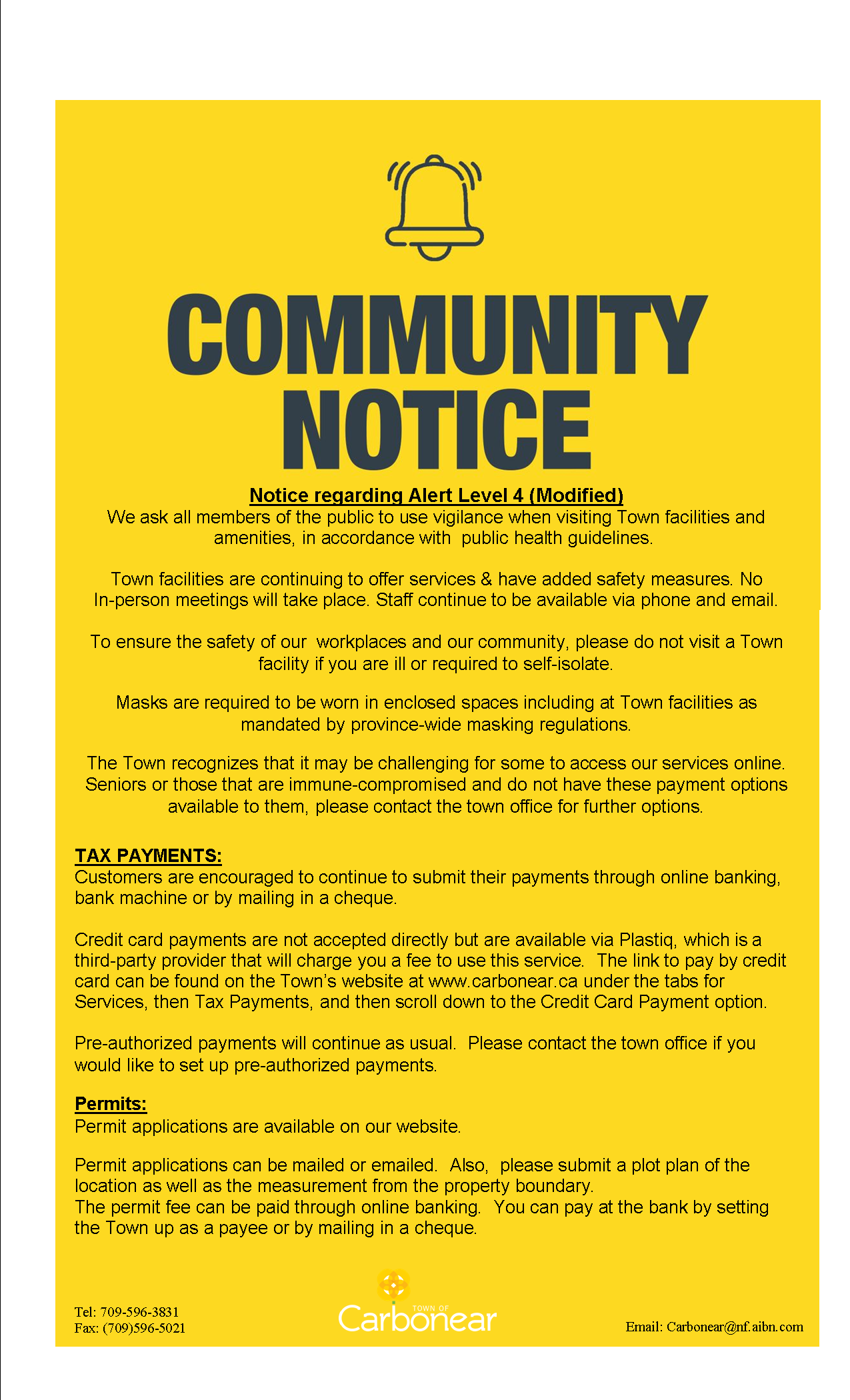 CAO Cynthia Davis 596-3831 (Town Office) or c.davis@nf.aibn.com