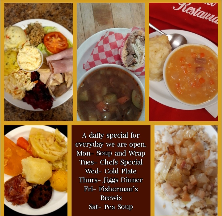 Crooked Phil’s Cafe is an all day breakfast restaurant. They also serve deli sandwiches, wraps, quesos and pizzas. They have many bakery items. Their most popular is our signature homemade bread, our many different flavored scones, pies and cookies. They offer Soups of the day. Theirr Turnip maple cream soup is one of their most popular Soups. They offer specials which include their secret recipe Dis’ n Dat’ Wings, chicken Ceasars wraps, and BBQ chicken poutine just to name a couple. On top of their wonderful food, they also display and sell Artwork from local Artists. They even have a place for Crooked Kids Artwork. The Crooked staff are always ready to serve their guests of all ages. And Remember, No one goes away Crooked from Crooked Phil’s.