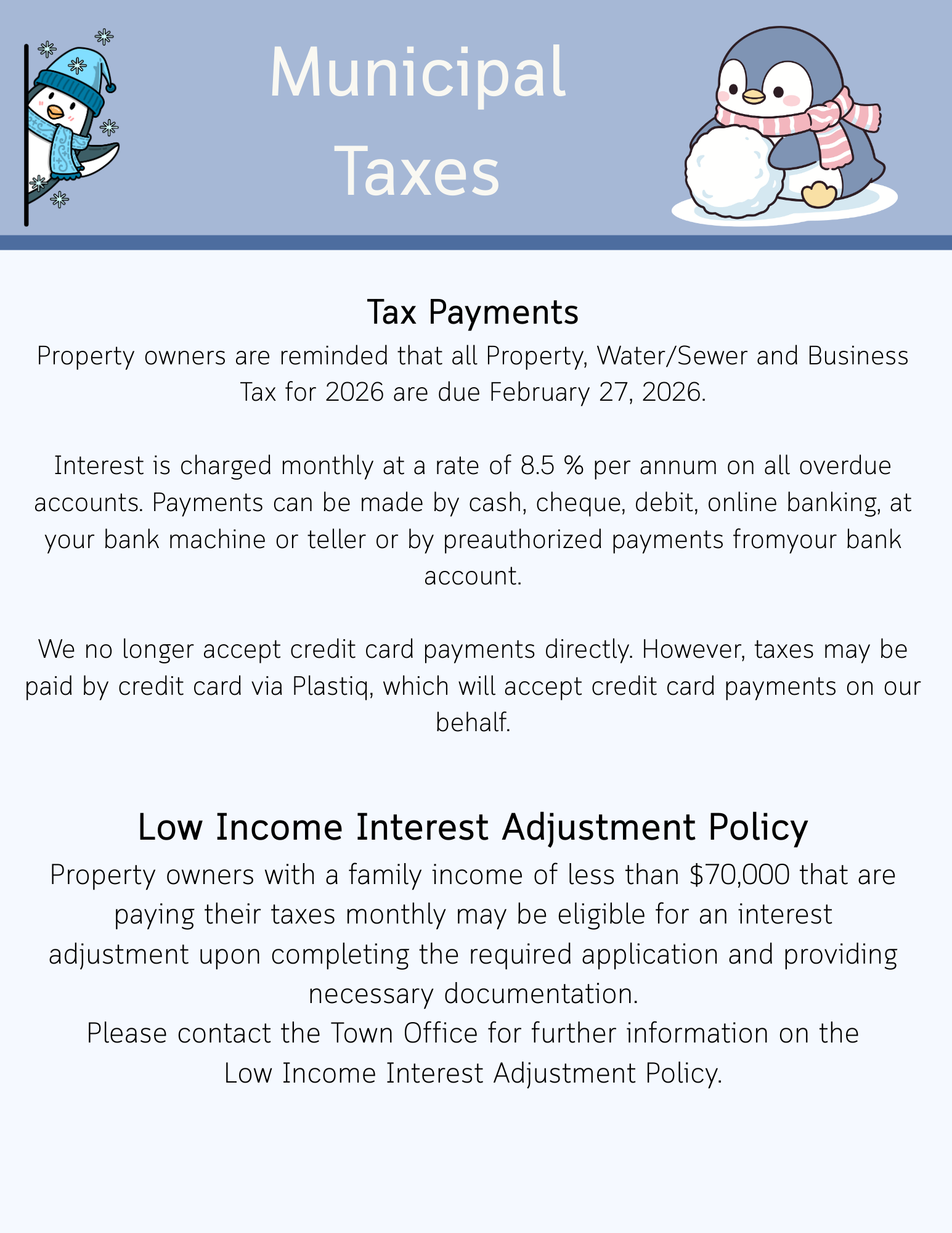 PUBLIC NOTICE: Town office closed on Tuesday, November 11, 2025. Town office will reopen on Wednesday, November 12, 2025