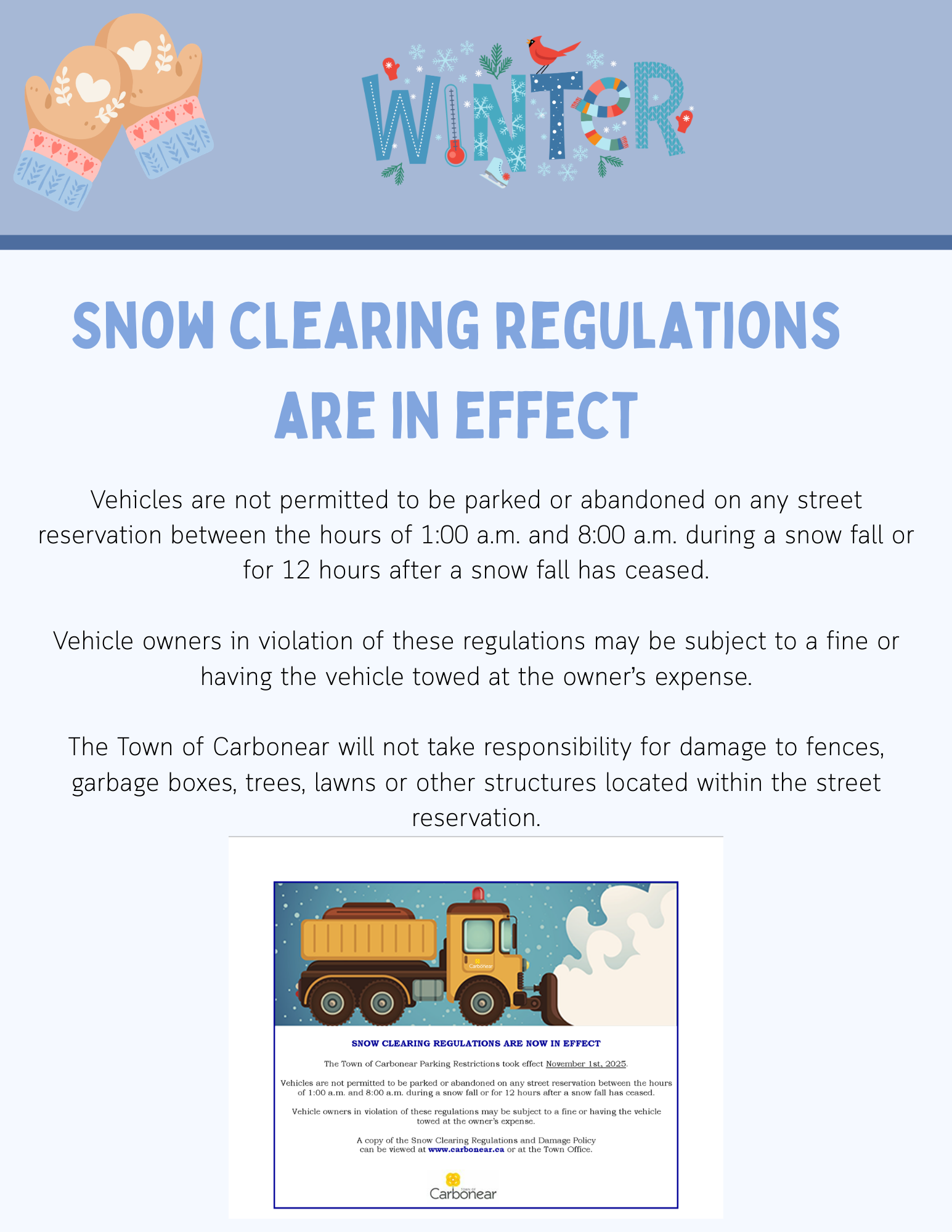 The Town of Carbonear Regular Council Meeting will take place Wednesday, November 12, 2025 at 5:30 p.m.