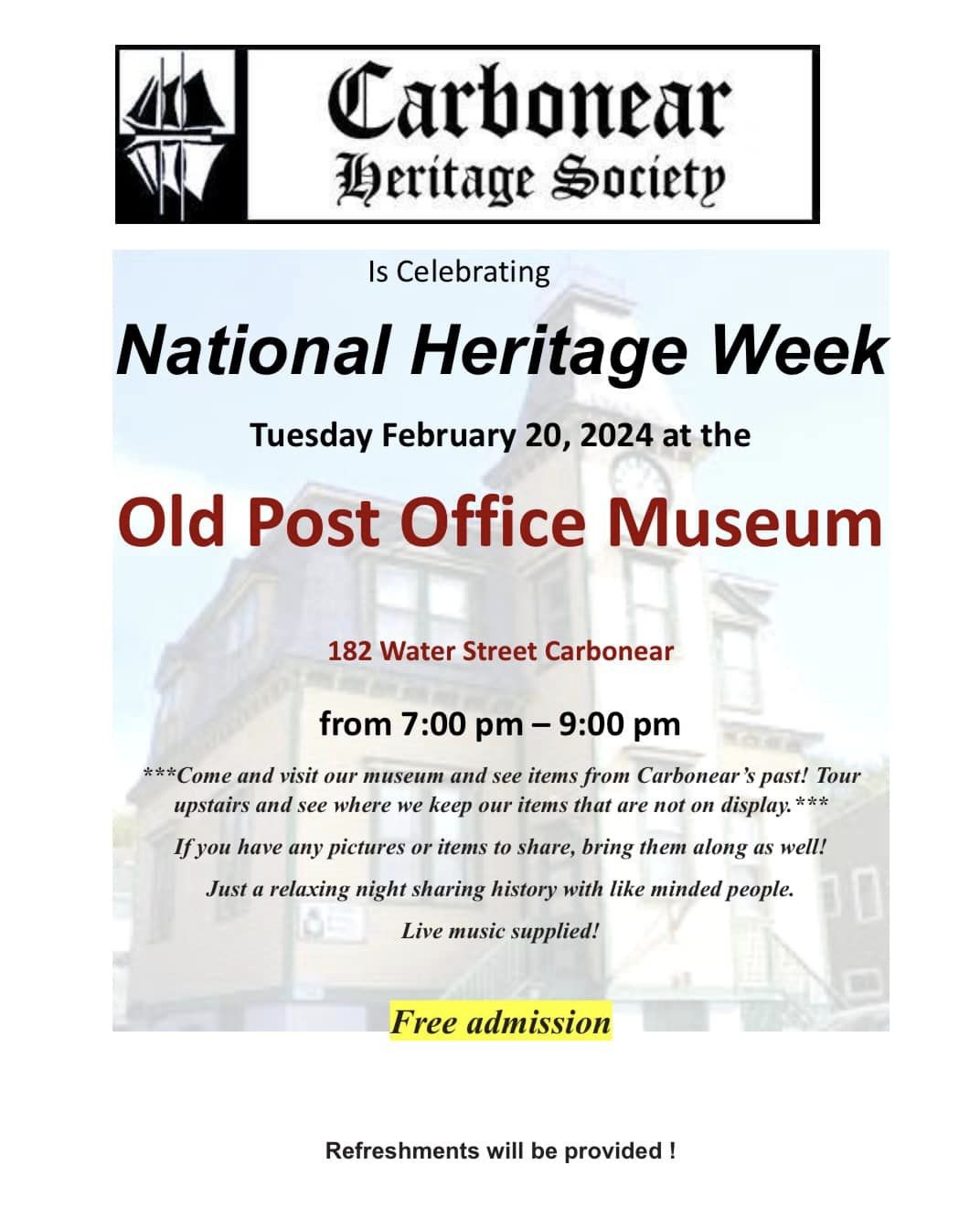 Carbonear Heritage Society celebrates National Heritage Week at the Old Post Office Museum