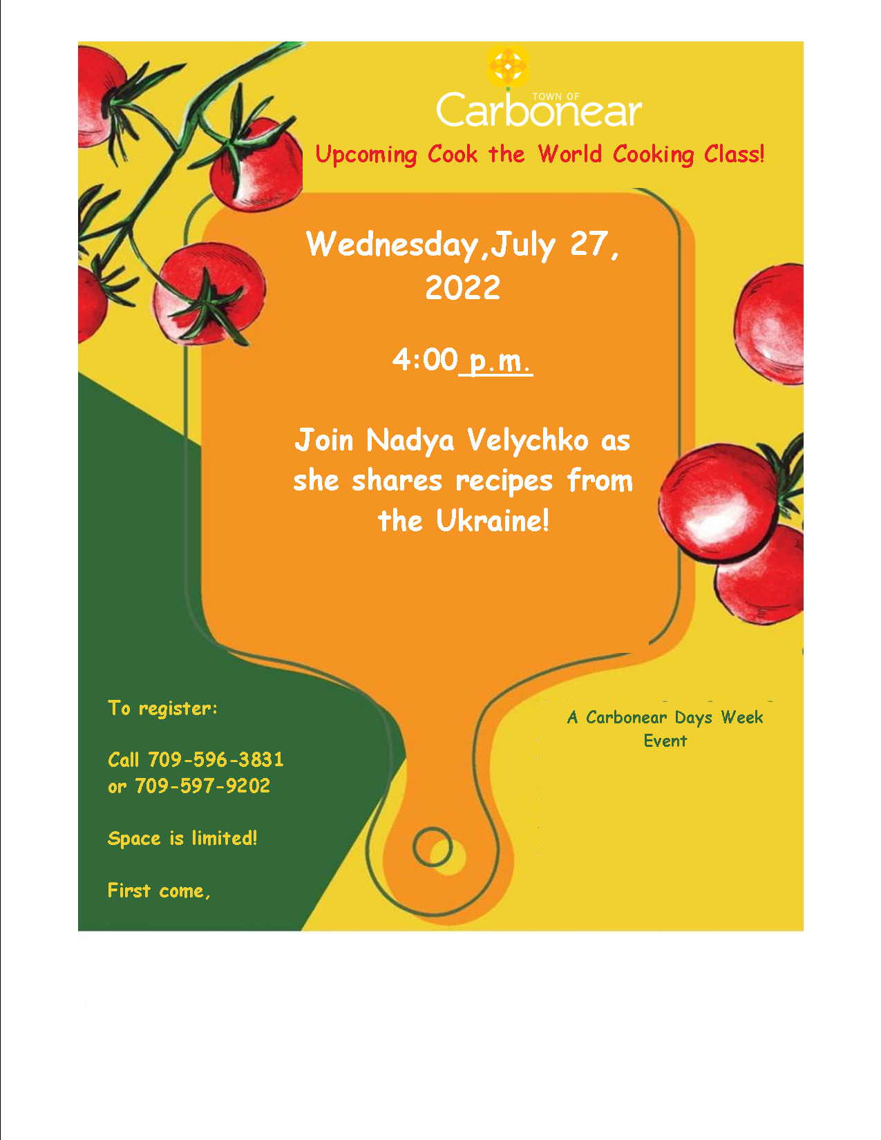 Call 597-9202 or email welcometocarbonear@gmail.com to register