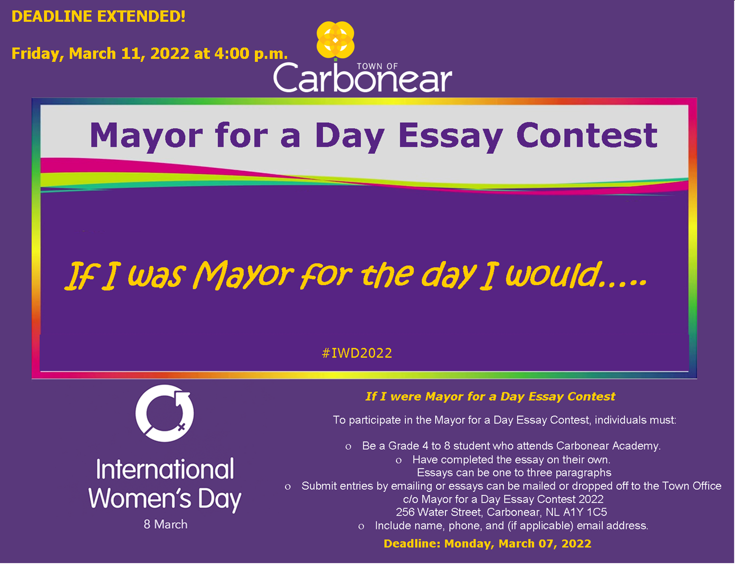 DEADLINE EXTENDED! If I were Mayor for a Day Essay Contest