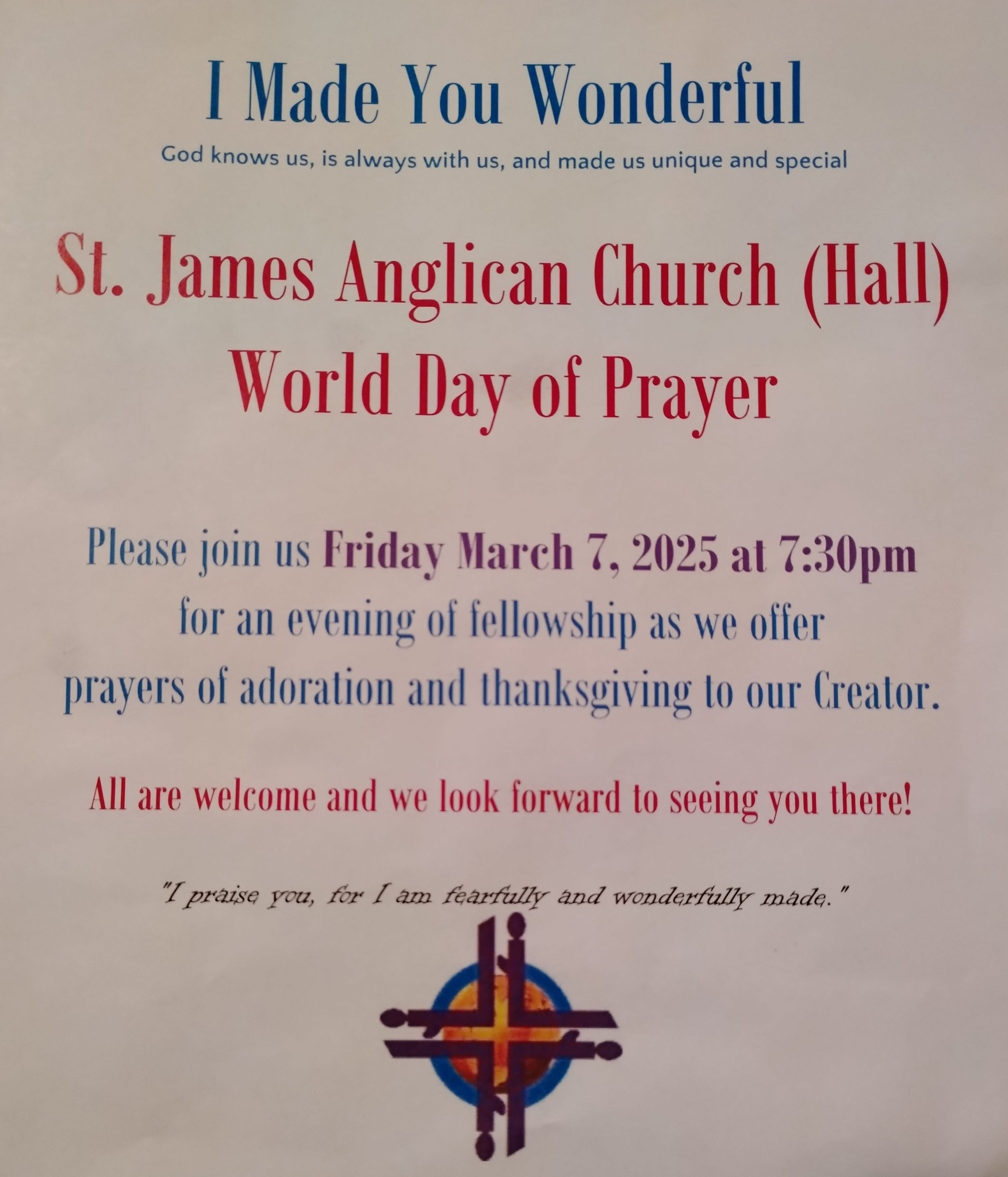 World Day of Prayer Service on Friday, March 7, 2025 at 7:30 p.m.