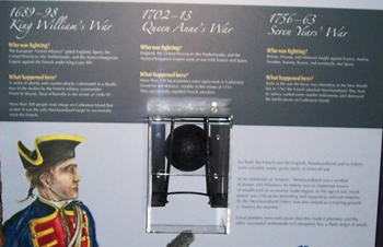 Again during Queen Anne’s War (1702-1713) French troops with their French Canadian courier de bois and Abnaki Indian allies again attacked and the settlers took refuge on the small island and once more repelled the attackers. Despite many attempts to gain access to the rocky cliffs of Carbonear Island during these difficult times, the defenders of Carbonear Island stood strong against attack and the small Island remained in English hands. This amazing feat was due mainly to the courageous determination of the settlers because during those battles, no military help was available and the weapons used were a few small cannon mounted on the cliffs and the musketry used for subsistence hunting. Carbonear Island has been quiet since the mid fifties when the fishing families gradually withdrew and the gulls are the main inhabitants of the little island except in the summer when occasional visiting tourists and locals take a trip out for a picnic or to walk the historic ground of their ancestors and reflect on past glories. In 2010, under the direction of the Town of Carbonear, archaeologist Roy Skanes conducted an archaeology Survey of Carbonear Island and with his team of fieldworkers dug more than 1200 artifacts from 100 test pits. Because these artifacts were of such interest, many dating to the 17th century, further archaeological exploration was conducted again during the summer of 2011, yielding more that 4300 artifacts, some dating to times of great interest and because of these findings plans are underway for further exploration. The Carbonear Island Exhibit opened on July 26, 2011. It is housed in the old Railway Museum and is an exquisite journey into the past 300 years of life on Carbonear Island. Boat tours are available during the late spring, summer and early fall to Carbonear Island. Although access to the Island is somewhat challenging, it is worth the time and effort to walk the steps of the brave defenders of this island that was the last hope for settlers in the days of conflict.